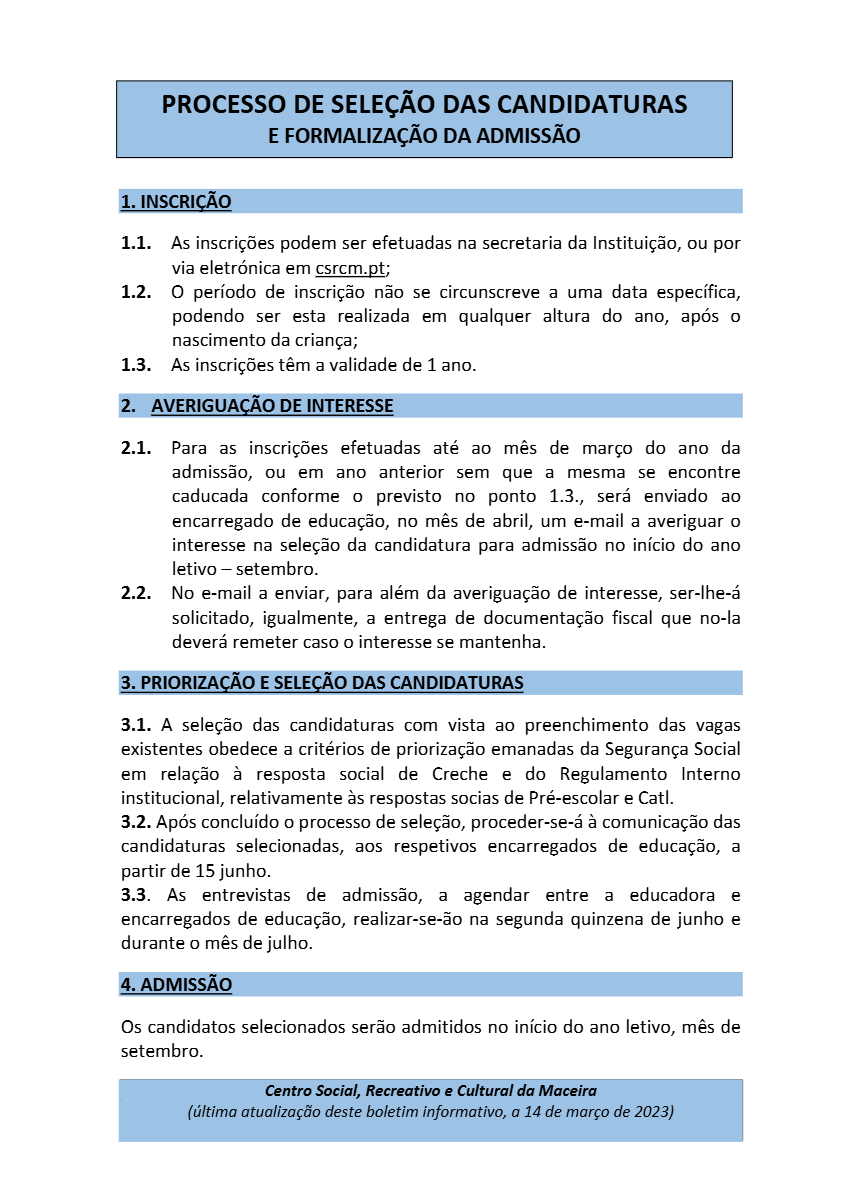 Processo de seleção da creche